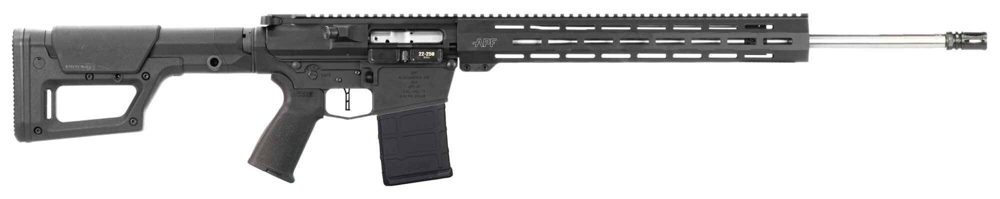 22 416SST Barrel – 15.5 MLOK Handguard – .750 Adjustable Gas Block – Rifle +2 Length Gas System – High Pressure Nickel Boron BCG – Billet Upper/Lower Receiver – APF 3.5lb Single-Stage Flat Trigger – Magpul PRS-Lite Rifle Stock – Magpul MOE Grip
