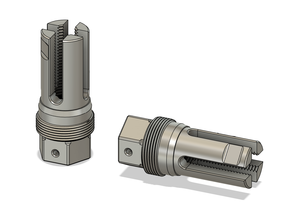 Flash hider compatible with common .900″-24 adapters like the Comstock LPA, Q Plan-B, and Rearden Atlas. The 4-Prong offers the best possible flash performance and features mass shifted tines to prevent the ringing noise that affects many other pronged flash hiders.