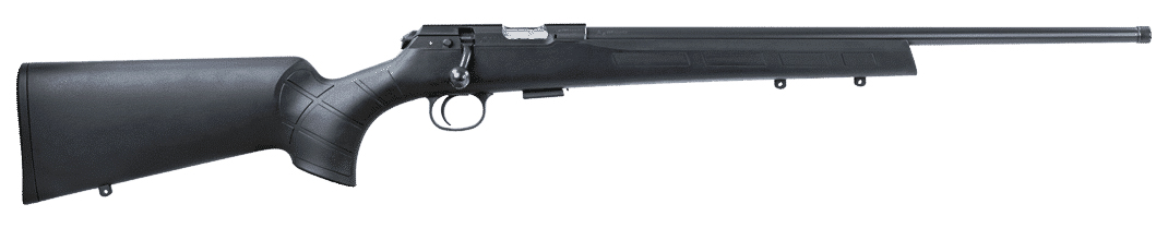 This variant of our 457 American sports a newly-designed synthetic stock that borrows ergonomics and styling cues from our 557 American Synthetic. That synthetic stock paired with the 457s nitride finish makes the rifle near impervious to the elements. 1/2×28 threads and our especially tight chamber tolerances make this rifle an ideal suppressor host. – Not equipped with sights this rifle has 11mm dovetails milled directly into the CNCed billet action for the solid mounting of rails or rings. The cold hammer forged barrel fully adjustable trigger push-to-fire safety and interchangeable barrel system all add up to equal a rifle that will last generations. – Chambering 22 LR – Twist Rate 1:16 in – Magazine Capacity 5 – Magazine Type Detachable – Stock Black Synthetic American-Style – Sights No Sights Integral 11mm Dovetail – Barrel Cold hammer forged muzzle threaded 1/2×28 – Barrel Length 20.5 in – Overall Length 38.5 in – Weight 5.4 lbs – Trigger Mech Fully Adjustable – Safety Two-Position Push-to-Fire