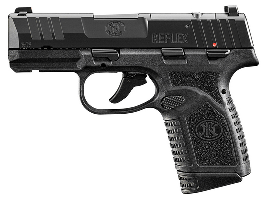 The FN Reflex MRD is a precisely accurate pistol for everyday carry and perfected for deep concealment. With an internal hammer and multiple redundant safeties the trigger is the smoothest most refined fire control in an FN carry pistol. Stacking tight groups on target with match-grade accuracy is instinctive with shootabilty besting all guns in its class. – 15- and 11-round magazines secure 26+1 rounds at the ready with a thin profile that won’t print under cover garments. A multi-faceted grip texture delivers more control at speed while a slim 1-inch slide adds all-day carry comfort. – Caliber: 9mm – Operation: Internal Hammer Fired SAO – Mag Capacity: 11/15 Rd. – Weight: 18.4 oz. – Barrel Length: 3.3 – Overall Length: 6.2 – Twist Rate: 1:10 RH – Height: 4.27 – Width: 1 – Trigger Pull: 4.5-5.5lb. – Sight Radius: 5.05 – Primary Features – Micro compact pistol chambered in 9mm – 3.3-in cold hammer-forged barrel – Internal hammer-operated with ~5lb single-action only trigger – Available in non-manual (NMS) and manual safety (MS) models; all models feature multiple redundant safeties – SLIDE – 3-dot iron sights with high-visibility Tritium front sight insert (with orange painted ring) – Available in optics-ready configuration; compatible with micro red dot optics that share the Shield RMSc or Holosun 507k footprints – 1-inch width for comfort and concealment – Easy grip front and rear slide cuts – Low slide racking force – FRAME – Internal hammer-operated with ~5lb single-action only trigger – Non-proprietary slimline accessory rail compatible with SureFire XSC 43X and Streamlight TLR-7sub flashlights – Reversible magazine release – Ambidextrous manual safety on manual safety (MS) SKUs – MAGAZINE – 11-rd standard capacity with 15-round extended magazine; ships with pinky extension floor plate for lower profile carry – BARREL – Cold hammer-forged target-crowned for accuracy – Polished chamber and ramp ensure feed reliability