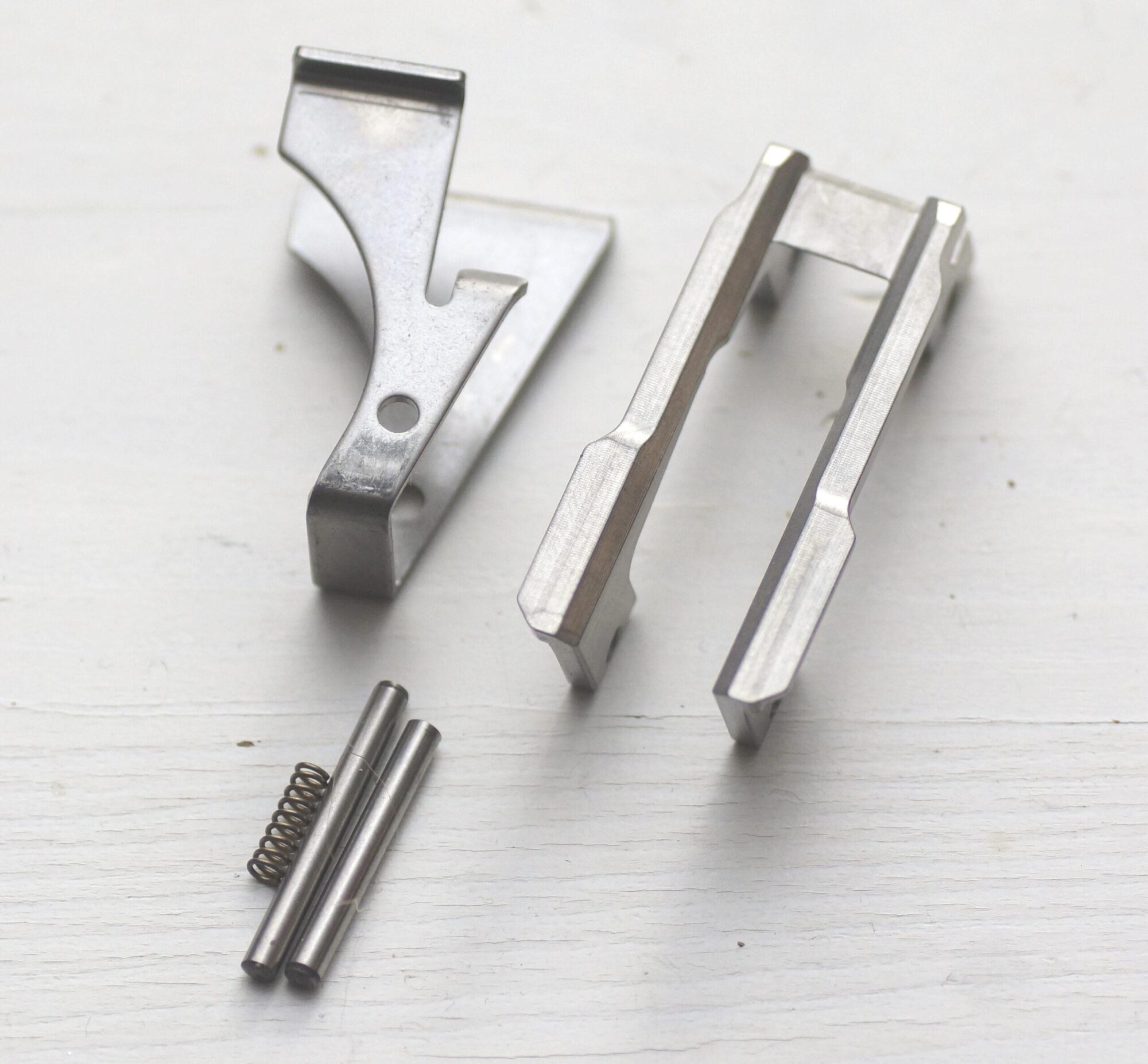 The Rook Tactical Front Locking Block Upgrade Rail is for a FULL-SIZED build like a 17, 22 or 21. The dowel pins are 18-8 pins and may need to be trimmed to size. What else you need: Complete Glock slide assembly of your choice. The whole frame, that you build. This is like a 0% build. You can print, machine, cast, whittle, etc. Lower parts kit. Please observe all local, state, federal and natural laws that apply to you.