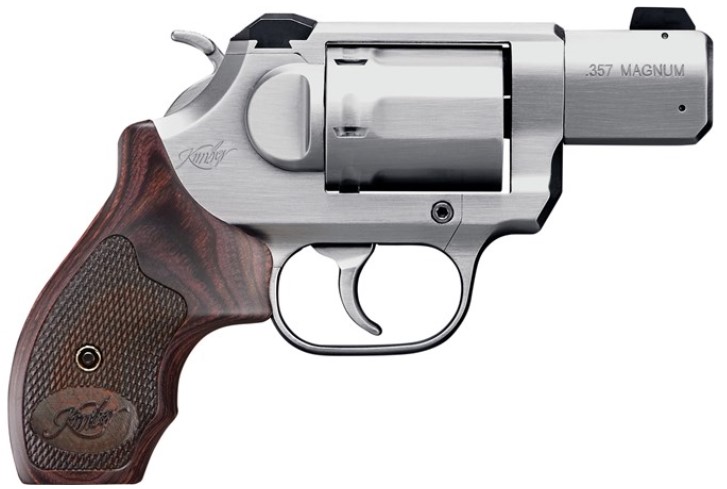 Specifications – Height (inches): 4.46 – Weight (ounces) with empty cylinder: 23 – Length (inches): 6.62 – Width (inches): 1.39 – Cylinder capacity: 6 – Action: DA/SA – Frame – Material: Stainless steel – Finish: Engraved over Brushed Stainless – Serrated backstrap – Barrel – Length (inches): 2 – Material: Stainless steel – Finish: Engraved over Brushed Stainless – Sights – White 3-Dot – Radius (inches): 3.5 – Grips – Walnut Boot Grip – Diamond Checkering – Trigger – Non-stacking – Double Action Factory setting (approx. pounds): 9.5-11.5 – Single Action Factory setting (approx. pounds): 3.25-4.25