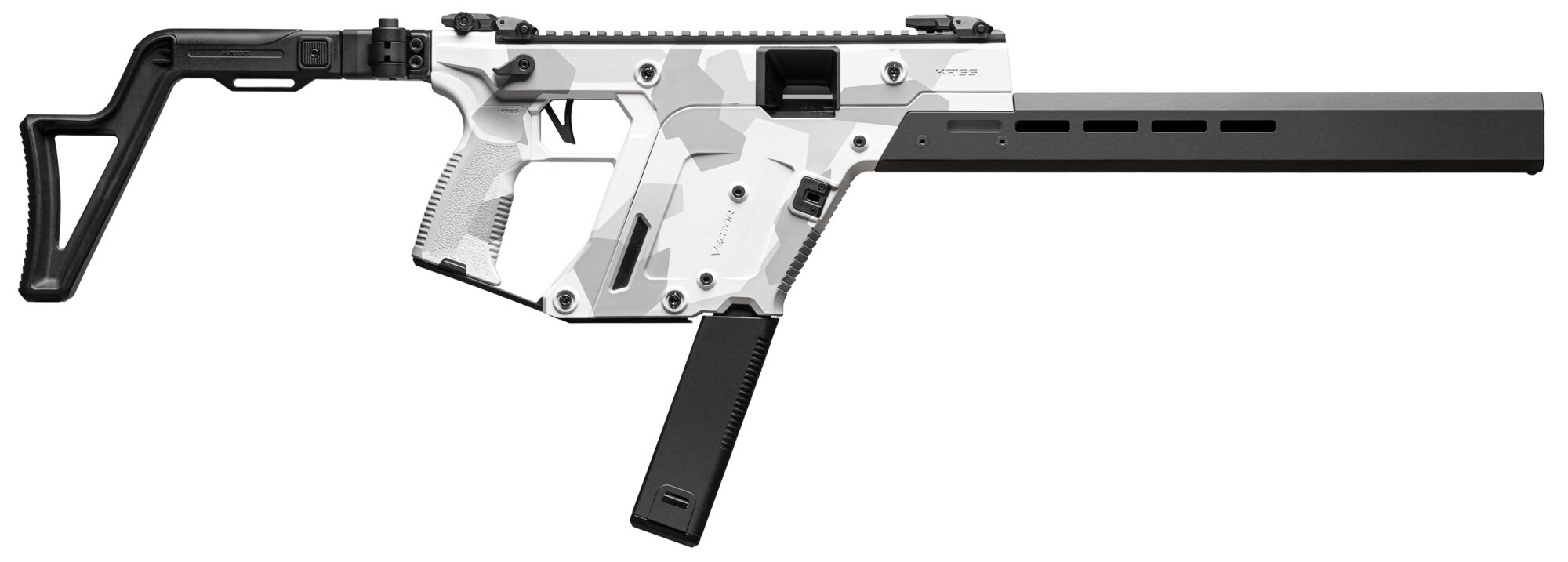 Experience the most versatile and competition-ready member of the Vector family. Tailored for recreational shooting and pistol-caliber carbine competition the KRISS Vector Gen 3 CRB delivers exceptional performance with a compliant 16 rifle-length barrel making it the most accessible model in the lineup. Its fully reimagined Gen 3 upper and lower housings offer enhanced ergonomics improved adaptability and greater customization for every shooting style. – A newly refreshed barrel shroud featuring integrated M-LOK® mounting points expands accessory options and elevates the CRB’s modern performance-driven design. – Compatible with full-size Glock® magazines the CRB provides intuitive handling and seamless magazine interchangeability for users familiar with Glock-pattern systems. – Caliber 9X19 – Model Vector CRB – Action Semi-Automatic – Operating System Closed Bolt Delayed Blowback – Barrel Length 16.0 in / 406.4 mm – Overall Length Collapsed 34.9 in / 887.5 mm – Overall Length Extended 36.9 in / 937.5 mm – Magazine(s) included (1) 40 Rounds – Color Arctic Delta CERAKOTE® Coating – Weight 7.7 lbs / 3.5 kg – Barrel Material 4140 Chrome Moly – Barrel Finish Black Nitride (QPQ) – Barrel Threading 1/2 x 28 RH – Trigger Type Pivoting Single Stage – Stock KRISS Ambidextrous Telescopic Folding Stock – WHAT’S IN THE BOX – (1) KRISS Vector Firearm – (1) Magazine – (1) Cleaning Kit – (1) Cable Lock – (1) User Manual – (1) Warranty Card