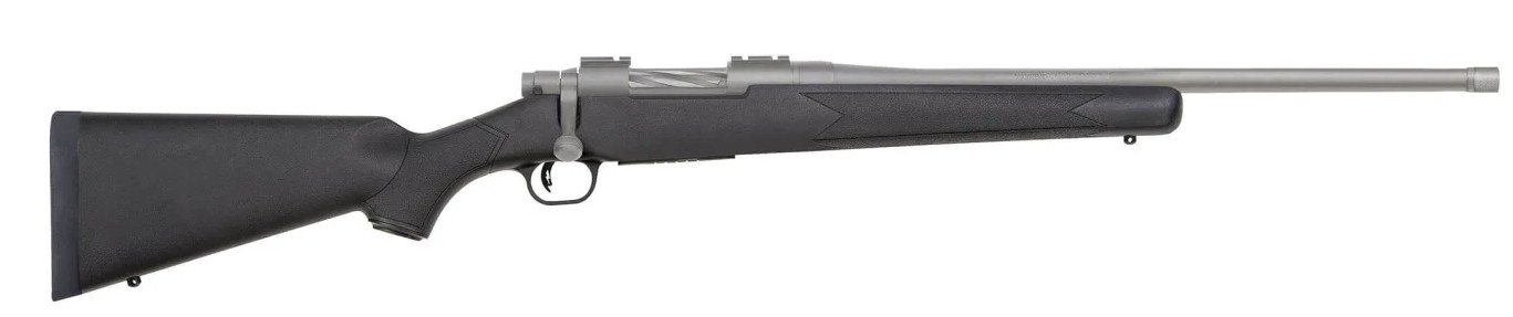 Mossberg & Sons, MFG# 28259, UPC: 015813282598, UOM: EA, Patriot, .450 Bushmaster, 20″ Threaded/Fluted Barrel, Cerakote Stainless, Black, Synthetic, 4-rd, MOSS, MOSSLG07, MOSSLGALL, LG07, LGALL