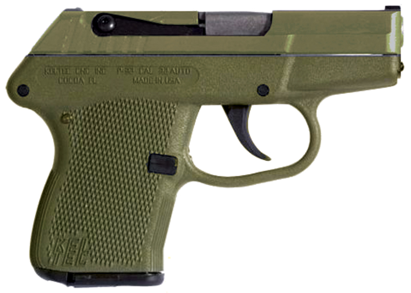Kel-Tec, MFG# P32GRNGRN, UPC: 640832003871, UOM: EA, P-32, 32 ACP, 2.68″ Barrel, Fixed Sights, Green Slide/Green Frame, DAO, 7-rd, KELT, KELTHG10, KELTHGALL, HG10, HGALL