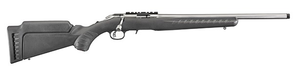 Brand:Ruger Model:Ruger American Rimfire Rifle Type:Rifle: Bolt Action Caliber:22LR Finish:Satin Stainless Action:Bolt Action Stock:Black Synthetic, One Piece Aluminum Scope Rail Sight:No Sights Barrel Length:18 Threaded Barrel 1/2-28 Overall Length:37 Weight:5.3 lbs Capacity:10+1 # of Mags:1 10-Rd Rotary Magazine Safety:Tang Safety Receiver:Satin Stainless, Drilled & Tapped Features:Power Bedding, Free Floating BBL, 13.75 LOP; Sling Swivel Studs, Marksman Adjustable Trigger