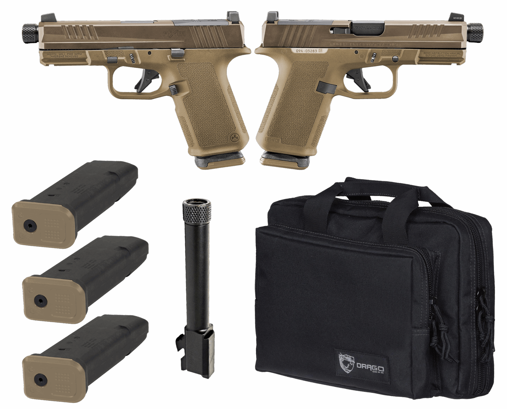 RUGER RXM TACTICAL BUNDLE 9MM PISTOL 4″ THREADED, 2 TONE FDE O.R. RANGE BAG, 3-15RD MAGS