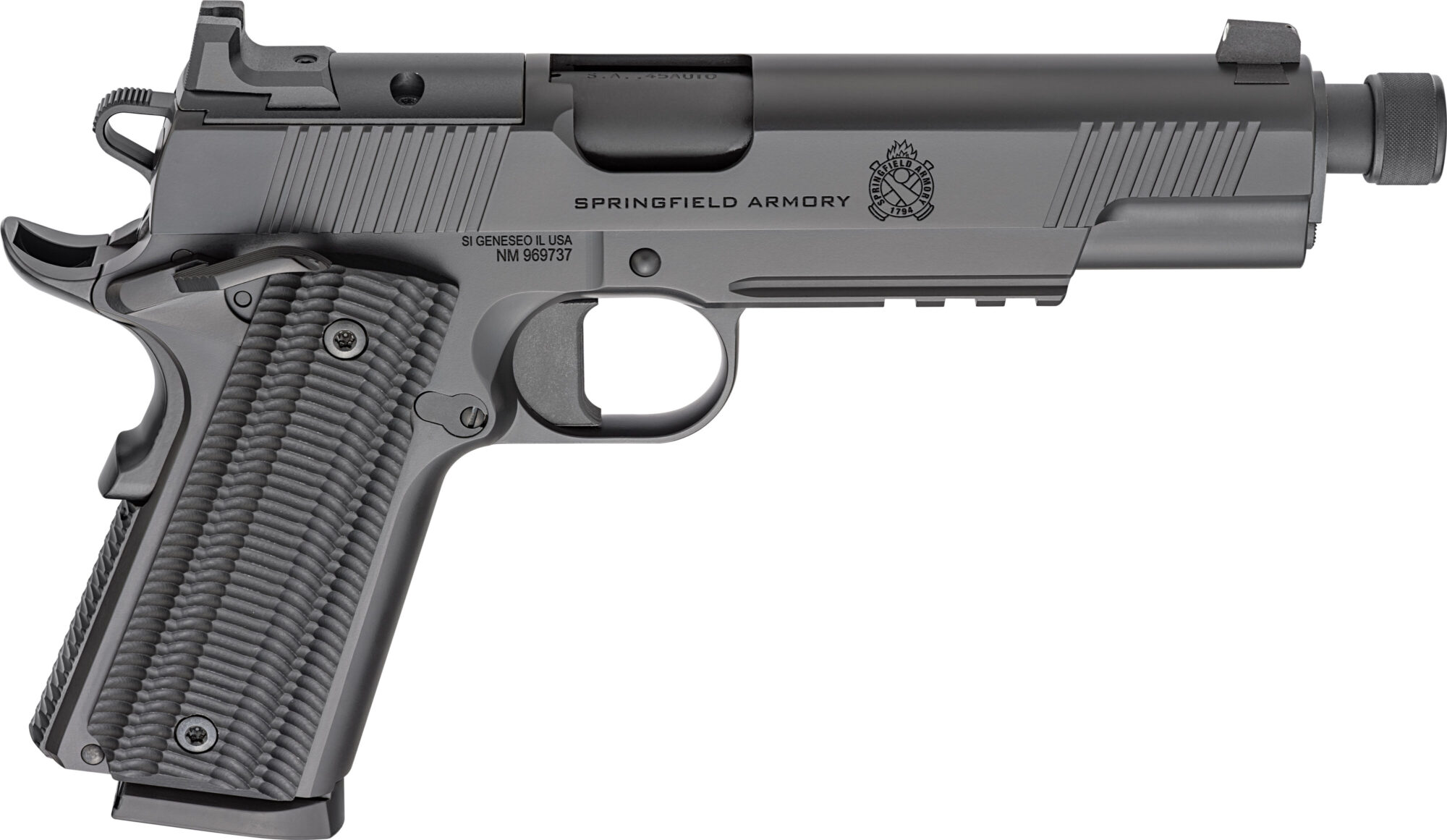 The 1911 Operator® AOS in .45 ACP delivers a handgun packed with duty-grade features that serious shooters demand. It comes equipped with a 5.75 threaded barrel for the attachment of muzzle devices G10 grips ambidextrous safety two nine-round magazines with bumper pads forward cocking serrations and an integral Picatinny rail making it a must-have tool for self-defense. Enhanced with AOS the Operator now supports a wide variety of popular optics including RMR Shield Delta Point Pro and Docter. Each AOS plate integrates a rear sight that ensures proper optic height and an intuitive sight picture providing visible co-witnessing in nearly all optic configurations. If you’re looking for a no-nonsense defensive-grade pistol in .45 ACP that’s ready to serve the Operator is your answer. – Caliber .45 ACP – Color Black – Barrel 5.75 Forged Stainless Steel Threaded (.578 x 28) DLC 1:16 – Slide Forged Carbon Steel Black Cerakote® Optics-Ready – Frame Forged Carbon Steel Black Cerakote® – Sights Tritium Front Black Serrated Rear – Recoil System GI Style – Grips VZ Grips® G10 – Magazines (2) 8-Round – Weight 42 oz – Length 8.6 – Height 5.25