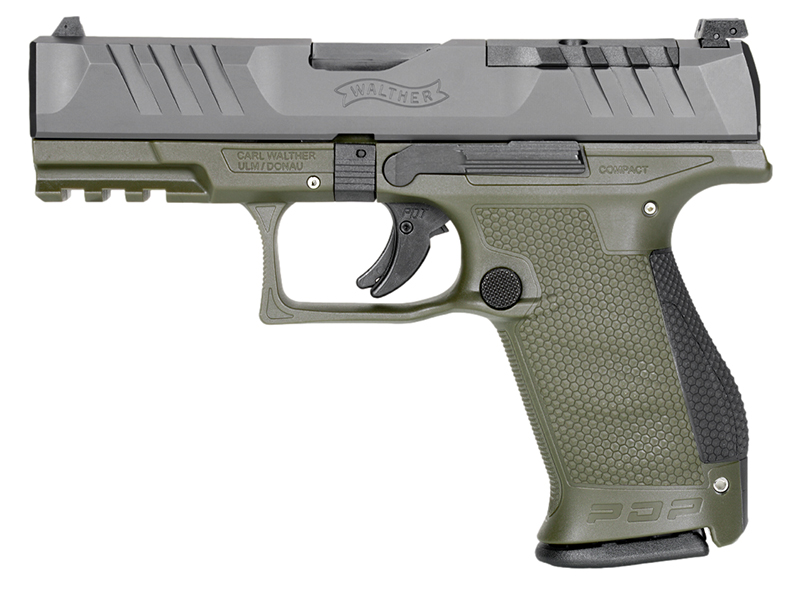 Walther Arms, MFG# 2858428, UPC: 723364227059, UOM: EA, PDP Compact, 9mm, 4″ Barrel, Optics Ready, Two Tone Green, 2 15-rd mags, WUSA, WUSAHG10, WUSAHGALL, HG10, HGALL